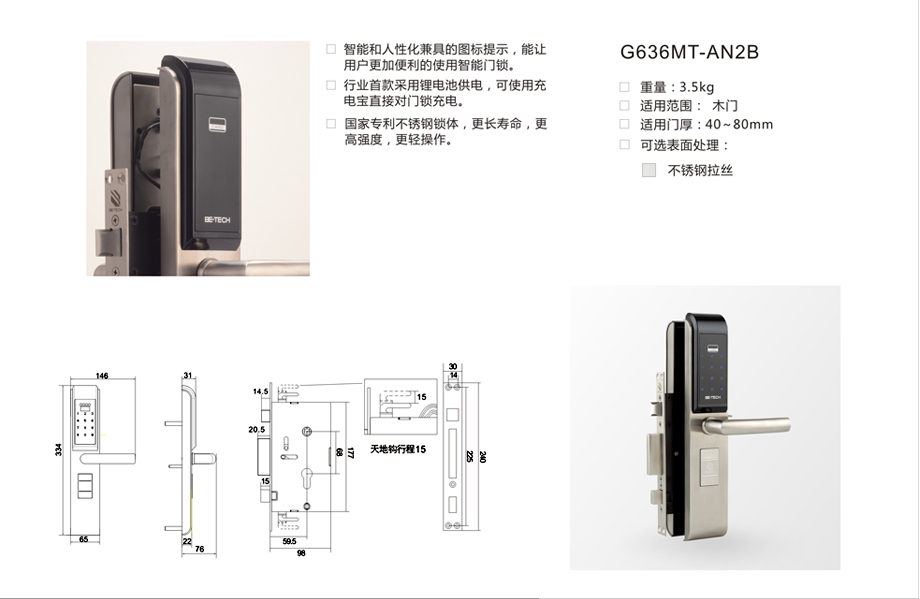 行業(yè)首款采用鋰電池供電,可使用充電寶直接對(duì)門(mén)鎖充電。