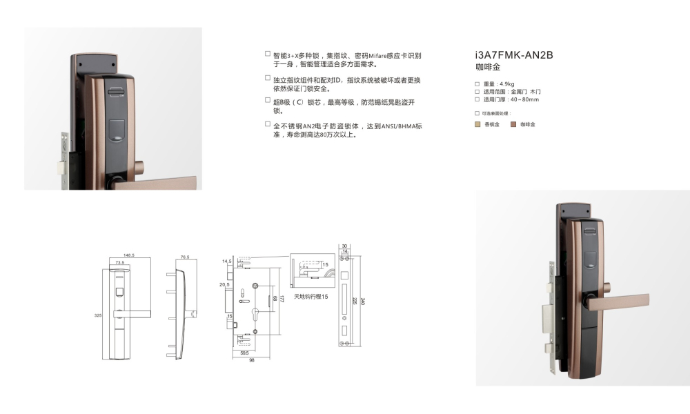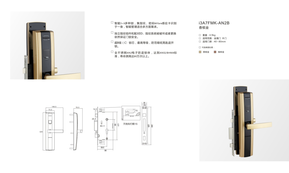 智能3+X多種鎖,集指紋、密碼Mifare感應(yīng)卡識別于一身,智能管理適合多方面需求。